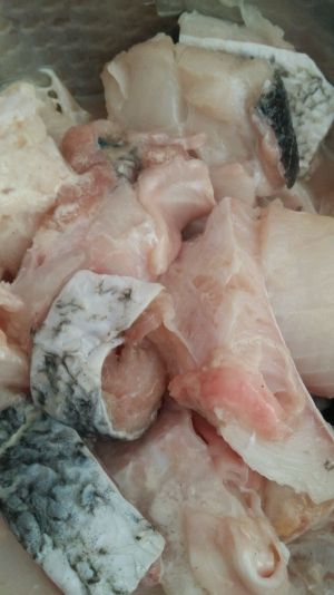 剩下鱼骨鱼头切段,同样方法腌制一下,对了料酒不可少,第一步鱼片腌制也是一样,刚才忘写了。好了现在做别的