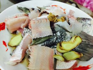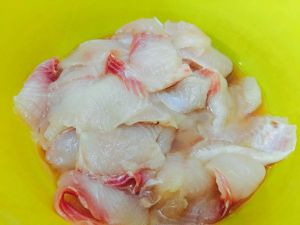 鱼肉片好 加入淀粉 蛋清 盐 料酒 生姜 腌制二十分钟