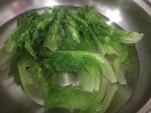 锅里煮开水 生菜和莴笋洗净 放水里煮熟