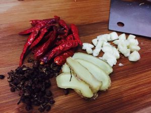 蒜 姜 切好 花椒 辣椒切段