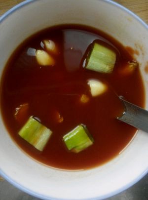 虾油按出来汤就是红色呦,不用放什么酱油,番茄酱什么的,然后放三勺糖,糖可以多放,一点儿也不会甜的,然后少放盐调味儿出锅就成啦!很简单吧!