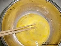 锅内倒入油,油热,倒入鸡蛋液,迅速搅拌,鸡蛋炒熟!