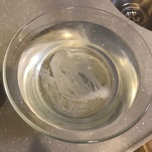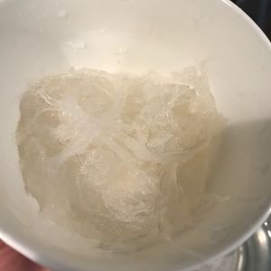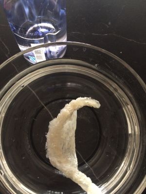 泡了一夜的燕盏是介个样子滴 模模糊糊的是因为刚从冰箱里拿出来