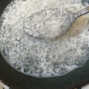 锅中放入冰糖和500克左右的清水,大火将冰糖熬化,用勺子撇去浮沫,将燕窝连带浸泡的水一起倒入锅中,煮开,再转小火煮20分钟即可。