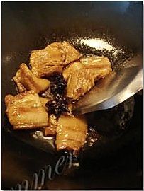锅中放油,六成热时,放入两枚八角炒香;
