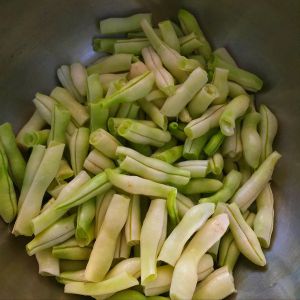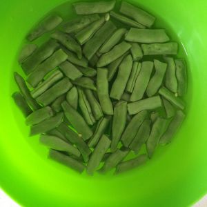 准备材料,扁豆去掉老丝,掰断