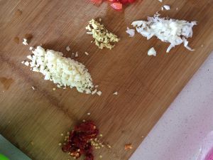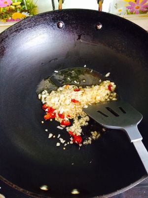 油热后煸炒葱姜蒜辣椒,炒香后放在一旁备用