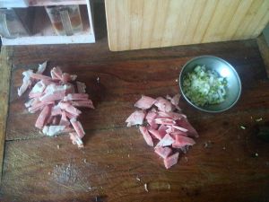 五花肉切片,青椒看自己喜欢切,我切的是块