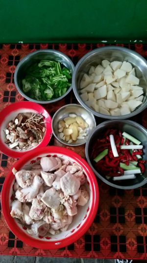 鸡肉绰水期间同步备菜,粉条是我另外加的,家人很爱吃粉条。不喜欢的朋友可以不加