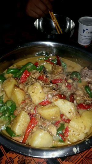 不会做拉条子太麻烦,就买了手擀面。煮好铺在最下面。