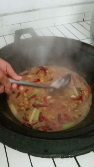 大约20分钟之后,把配菜倒进去翻炒一下短生之后加少许鸡精乘出。
