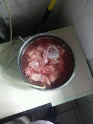 排骨切段洗净用活氧机打半小时去血沫杂质