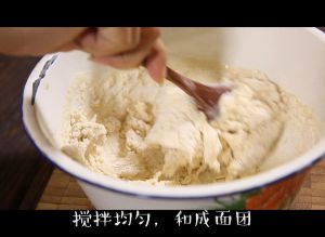 南瓜泥挖出来,加15g食用油,撒一些酵母搅拌均匀,再多少量次地搅拌入面粉
