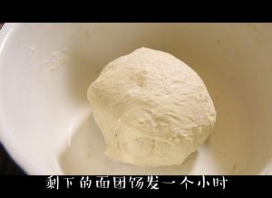 取一小块面粉揉进竹炭粉,揉成均匀的面团,剩下的面团饧发一小时