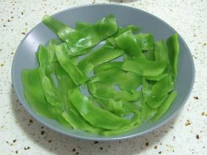黄瓜甜椒洗净沥水切细丝。