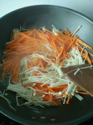 放入金针菇爆炒几分钟加胡萝卜