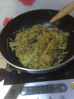 翻炒一会儿后加入尖椒丝。