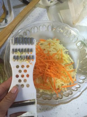土豆和胡萝卜打丝。我刀工不好,所以会借助这些小工具。