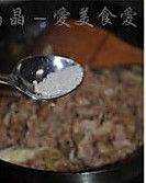 放入姜丝儿,加入料酒、酱油、盐。羊肉五分熟后再放入葱段,继续翻炒。根据情况可以放入少量面粉勾芡。也可以不放。