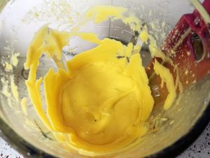 淡奶油混合到将芒果果泥中,混合均匀。