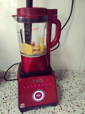 破壁机内放入芒果和牛奶。