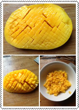芒果洗净,去皮切成小丁。
