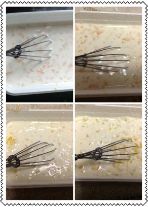 一共需要搅拌四次,听说少了会有冰碴,这是第四次时候的样子,基本成品就是这样的了。看起来还不错是不是?每次搅拌我都会偷吃一口,真的太好吃啦。