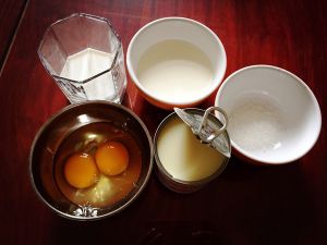 准备好上述的原料,蛋挞皮一定要事先解冻,否则会极大地影响口感。纯牛奶我用的是金典,鸡蛋当然是土鸡蛋啦~