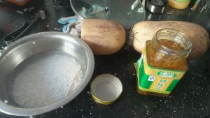 将灌好米的藕放入之前煮好的汤中,倒入浸泡血糯的水,加水没过藕节。放冰糖。我是用电压力锅煮的,选择“焖炖”,28分钟。
