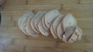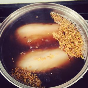 取出藕节,用质量好的保鲜袋盖好,放凉。同时将汤头再熬煮一下,令其浓稠一些。
