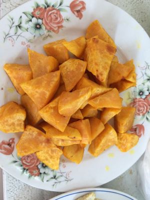 4.炒至上色后出锅,拔丝芋头就完成啦,吃上去因为白糖而有一丝丝的苦味