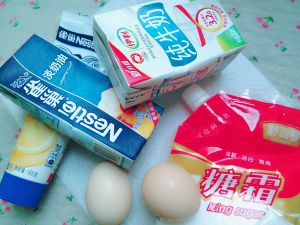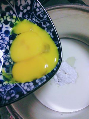 牛奶与糖霜拌匀,再放入蛋黄和炼乳。