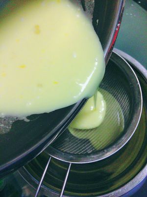冷却至不烫手后,加入蛋黄与低筋面粉,搅拌均匀制成“蛋挞水”。