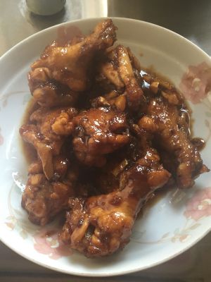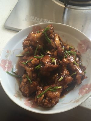 等汤汁浓稠裹到鸡腿上面时,即可出锅装盘,最后撒上葱花缇香点缀,美味即成。