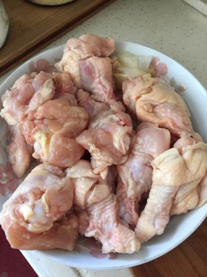 鸡翅根用清水泡净,冷水下锅煮5分钟左右。捞出控水。(很重要的一步:用好用的工具,在案板上拍拍鸡腿,让它松散一些,做的时候好入味。或者可以扎些洞也可以。自己方便的方法就可以)