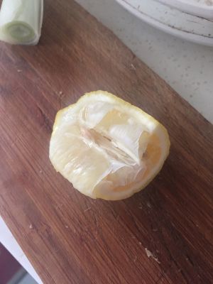 取半个柠檬挤出汁水倒入鸡腿上,腌制20分钟