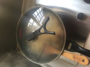 带有鸡皮的那一面先放入锅里煎,我没有倒油,因为柠檬腌制过,加上鸡皮上有鸡油哈