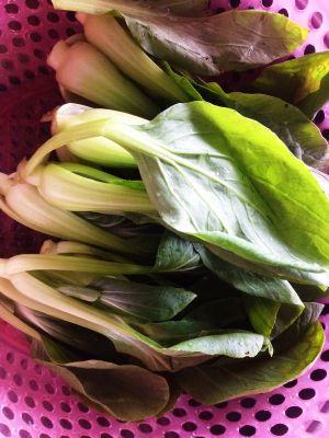 油菜焯水烫熟后捞出备用,尽量不要有水。可以在焯的时候加点盐。