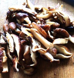 把香菇放沸水里煮5分钟捞出,把香菇含的水挤出(要不然炒出来水太多)