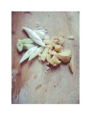 加葱段姜片,一个炖肉包,两个红辣椒。