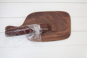 将面团搓成长条状,直径约5cm,包上保鲜膜,放冰箱冷藏半小时;