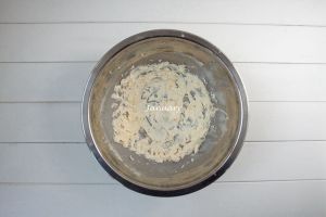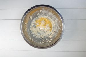 黄油提前软化,用电动打蛋器打至发白,呈现羽毛状;