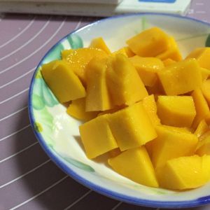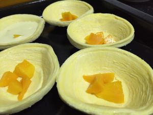 蛋挞皮自然温度解冻的那个里面放2—3块小芒果
