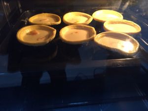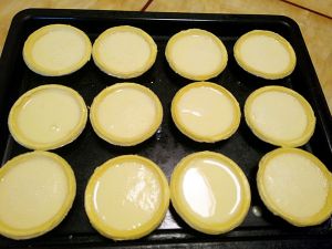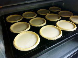 烤箱220度预热好,放入蛋挞上下火烤15分钟左右,看到蛋挞上色就可以关火出炉了。