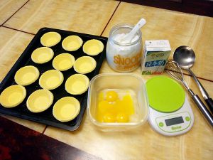 蛋挞皮取出8个先解冻,取出2个鸡蛋把蛋黄和蛋清分离出来。