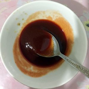 拿出空碗 加入一勺番茄酱、4勺白糖、醋少许、搅拌均匀 其中番茄酱、糖、醋的比例大家可以在调配时自己尝尝 一定要根据自己的喜好而定 我个人喜欢酸的 加了醋 大家也可以不加喔