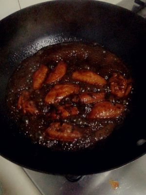 加入可乐,刚好没过鸡翅,等待收汁
