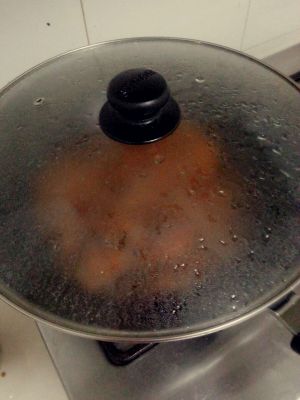 放入锅中倒入可乐 马上盖上 吸取可乐味就在这瞬间 煮至可乐变少