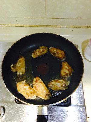 将鸡翅煎至两面金黄。