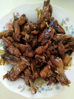 倒入酱油,可乐,至收汁。若有红烧汁,可代替酱油,味更美